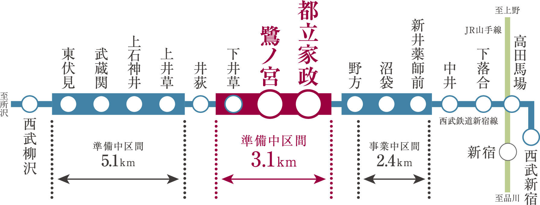 西武新宿線「都立家政」「鷺ノ宮」、西武池袋線「練馬」