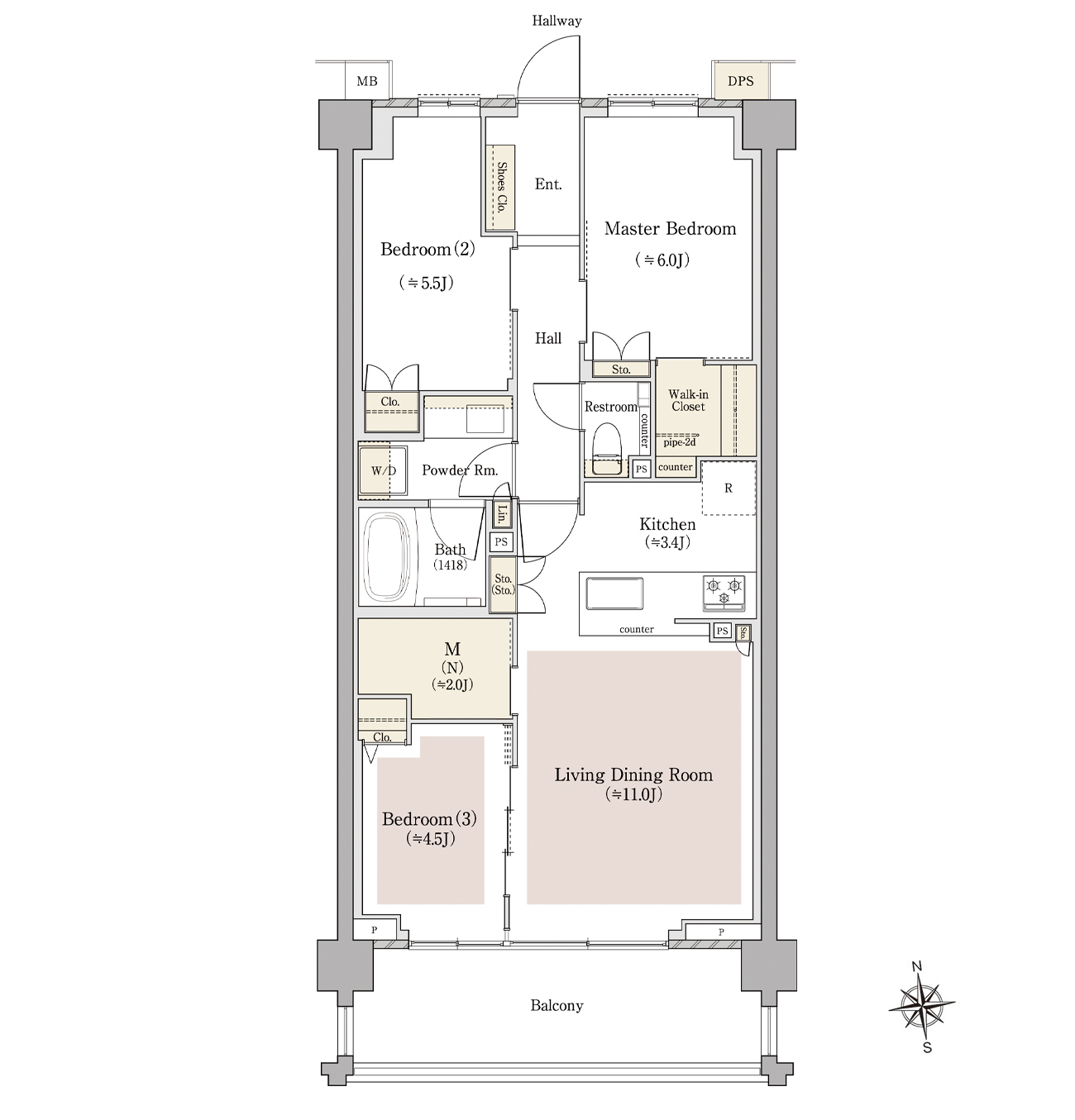 M:マルチルーム(納戸) WIC:ウォークインクローゼット